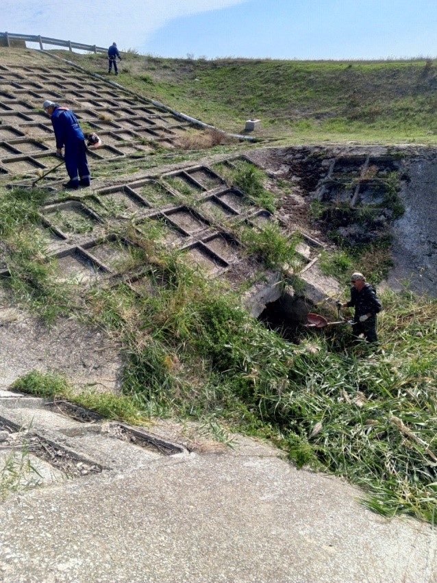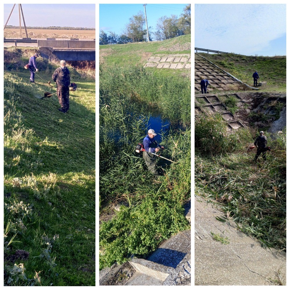 Работники Джанкойского филиала продолжают выполнение уходных работ на объектах филиала. Азовский участок оросительных систем проводит скашивание камыша и другой сорной растительности на верхних бьефах водопропускных труб под Азово-рисовым каналом, а также ремонт плоской крыши на межхозяйственной насосной станции №121. Работники 3-го отделения Северо-Крымского канала производят окоску сорной растительности на водопропускных трубах №12, №13 под СКК. Также производят подготовку под покраску ворот складских помещений и гаражных боксов на производственной базе отделения. Работники насосной станции №1 обновляют информационную стелу. Данные работы проводятся в рамках выполнения государственного задания на 2025 год.