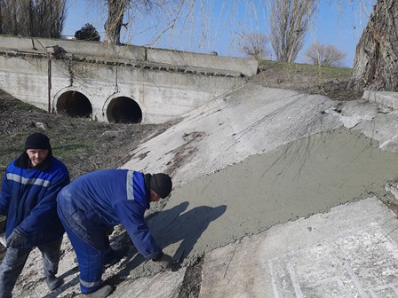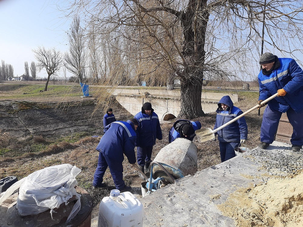 Согласно планов ремонтно-уходных работ на межхозяйственной сети производиться ремонт бетонных конструкций гидротехнических сооружений, ремонт бетонной облицовки фиксированного русла на гидропостах и ремонт заплечиков и швов в плитах на дамбах и каналах .
