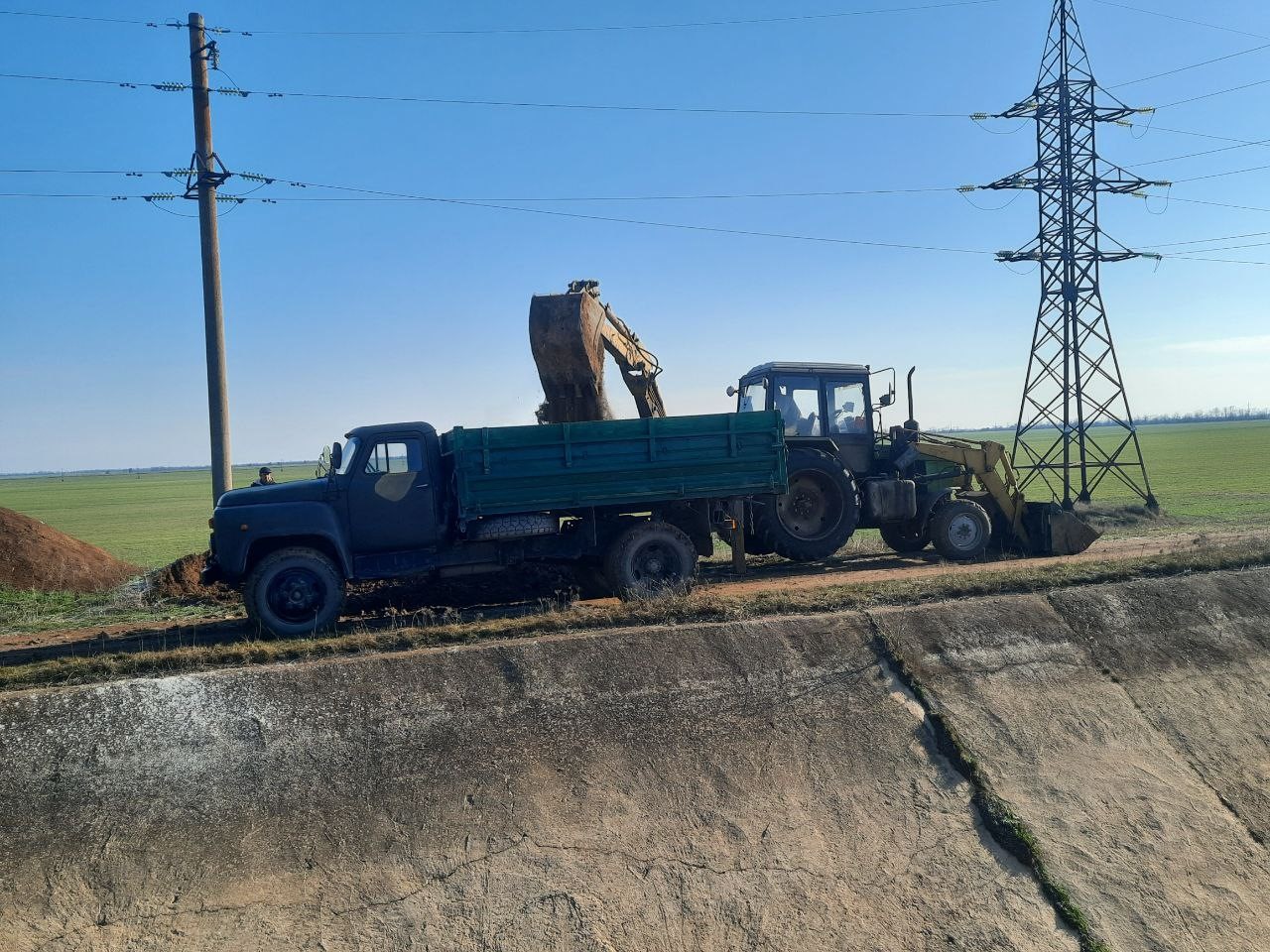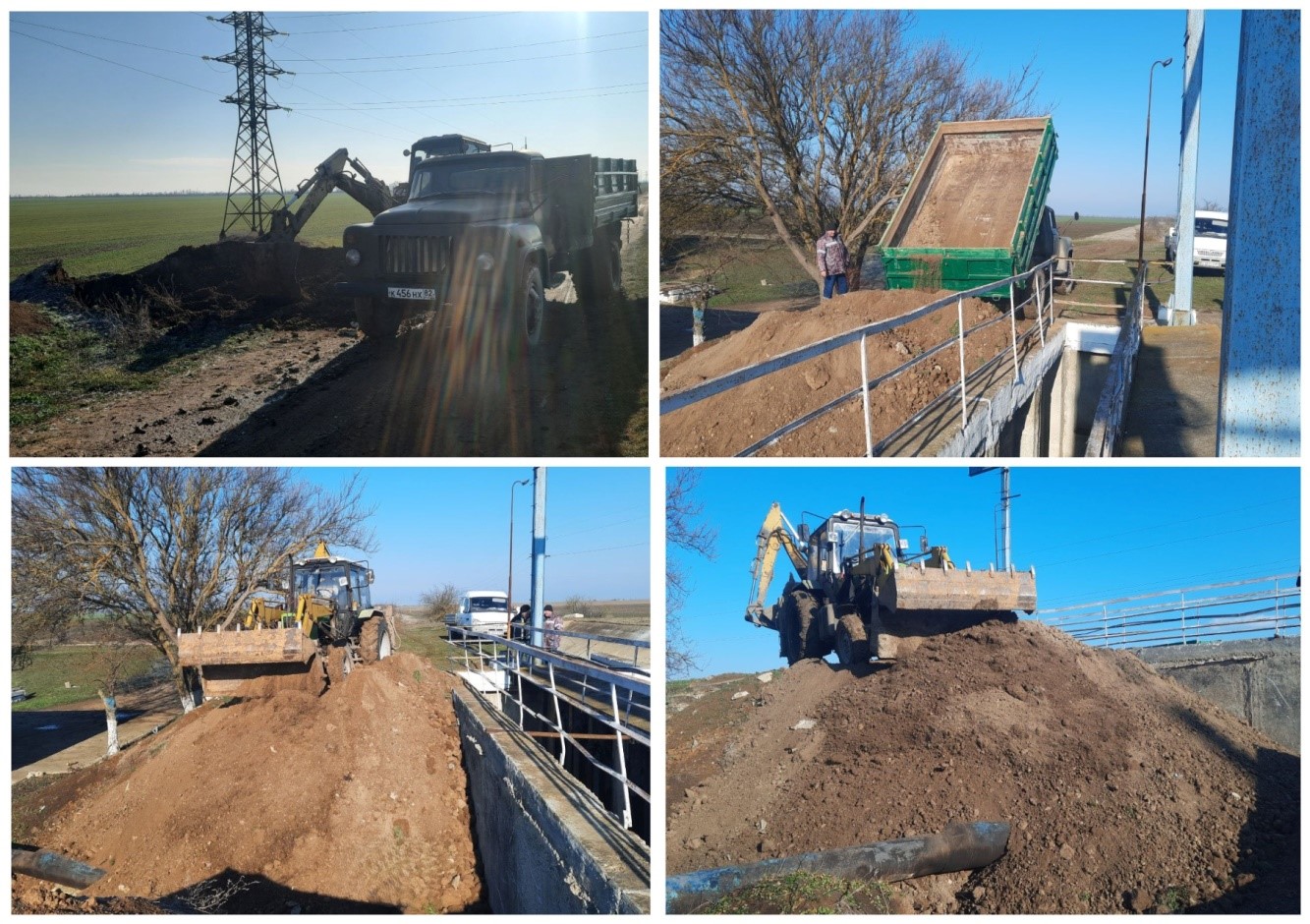С целью подготовки насосных станций Красногвардейского филиала к поливному сезону 2026 года, после ремонта трубопровода на насосной станции №487, работниками отделения оросительных систем №4 проведена работа по восстановлению дамбы аванкамеры. Для заполнения котлована грунтом задействована спец. техника.