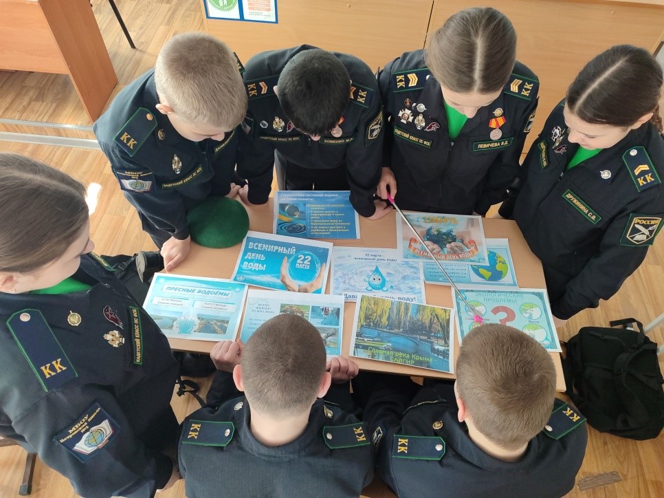 На базе МБОУ «Петровской школы №1 имени И.А. Егудина» проведён открытый урок с учениками 7-х и 9-х кадетских классов. Урок посвящен и приурочен к Всемирному дню водных ресурсов. Учащимся школы были представлены материалы о ценности воды и водных источников Крыма. В презентации рассказывалось об огромных энергетических запасах воды, её пользе для человека, природы и планеты земля в целом, а также экологических проблемах водных источников. Целью данного мероприятия является донести ребятам о ценности и важности воды, как ресурса, привить бережное отношение к ней, бороться за чистоту воды и охрану водоёмов, участие молодежи в эковолонтёрстве по охране водных ресурсов и пропаганде экологического досуга.
