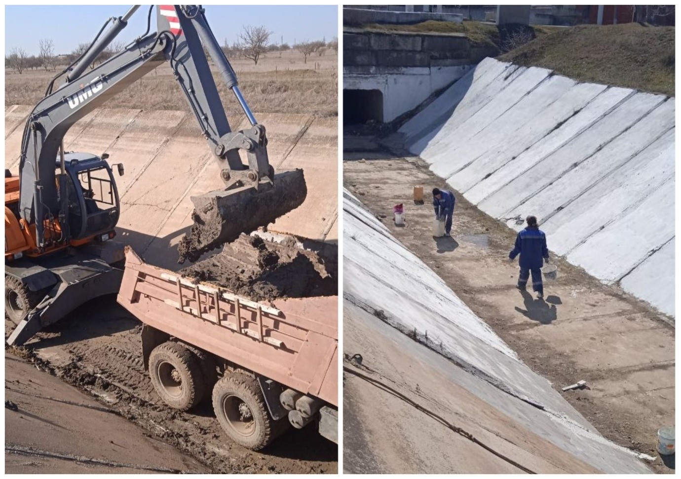 За текущую неделю на участке канала между ПК21+00 и ПК22+00 проведена очистка еще 80 м русла канала от наносов экскаватором UMG E185W. Изъятый из русла грунт загружается в КАМАЗ 55111 и транспортируется к месту складирования в отвал на прилегающей к каналу территории. Объем изъятого грунта составил 300 кубометров. Благоприятные погодные условия позволяют проводить работы без задержек.