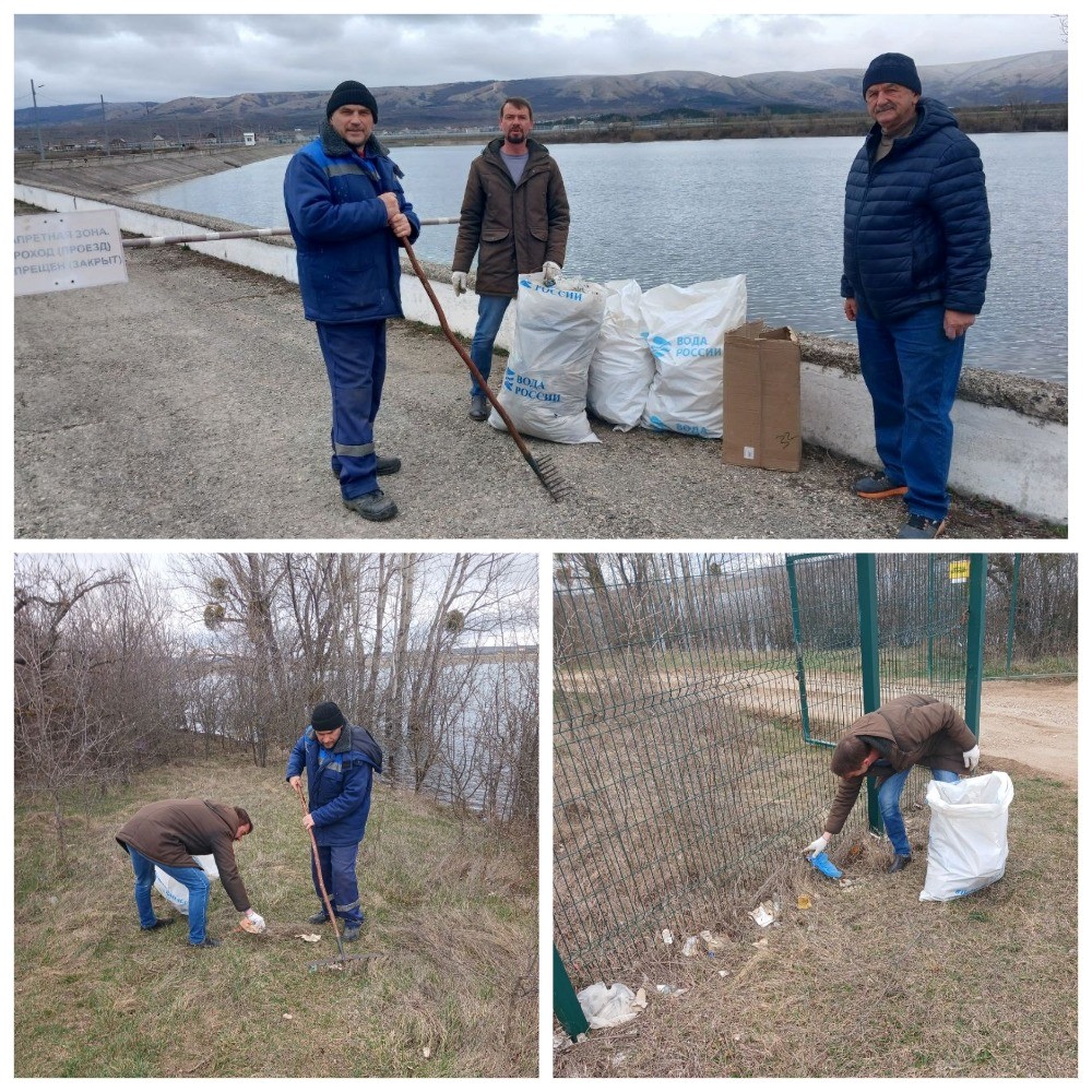 В рамках экологической акции «Крым- регион экологической безопасности и чистоты» работниками Аянского гидроузла был проведен субботник в первой зоне санитарной охраны водохранилища. Было собрано 0,24 кубометров мусора на площади.