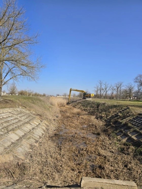 Во исполнение Поручения №3 от 26.02.2026года Главы администрации Джанкойского района по итогам аппаратного совещания со службами района проводятся работы по механическому удалению поросли деревьев и камыша с последующим мульчированием на откосах и бермах главного коллектора ГК-4-1А в селе Новостепное Джанкойского района. При выполнении работ задействован колёсный экскаватор XCMG XE 210 WB с мульчирующей насадкой на длинной стреле Красноперекопского филиала ГБУ РК «Крыммелиоводхоз», а так же 6-ти осмотрщиков ГТС Джанкойского отделения коллекторно-дренажных систем со средствами малой механизации. Объём работ составляет 2,3 километра. В некоторых местах глубина главного коллектора доходит до 10 метров. Перевозка экскаватора производилась автомобильным тралом КАМАЗ-54901 Красногвардейского филиала ГБУ РК «Крыммелиоводхоз».