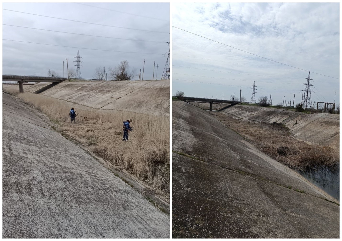 Силами бригады участка оросительных систем филиал были выполнены работы по скашиванию камыша в русле канала с применением средств малой механизации от моста на село Кормовое ПК-564+34.