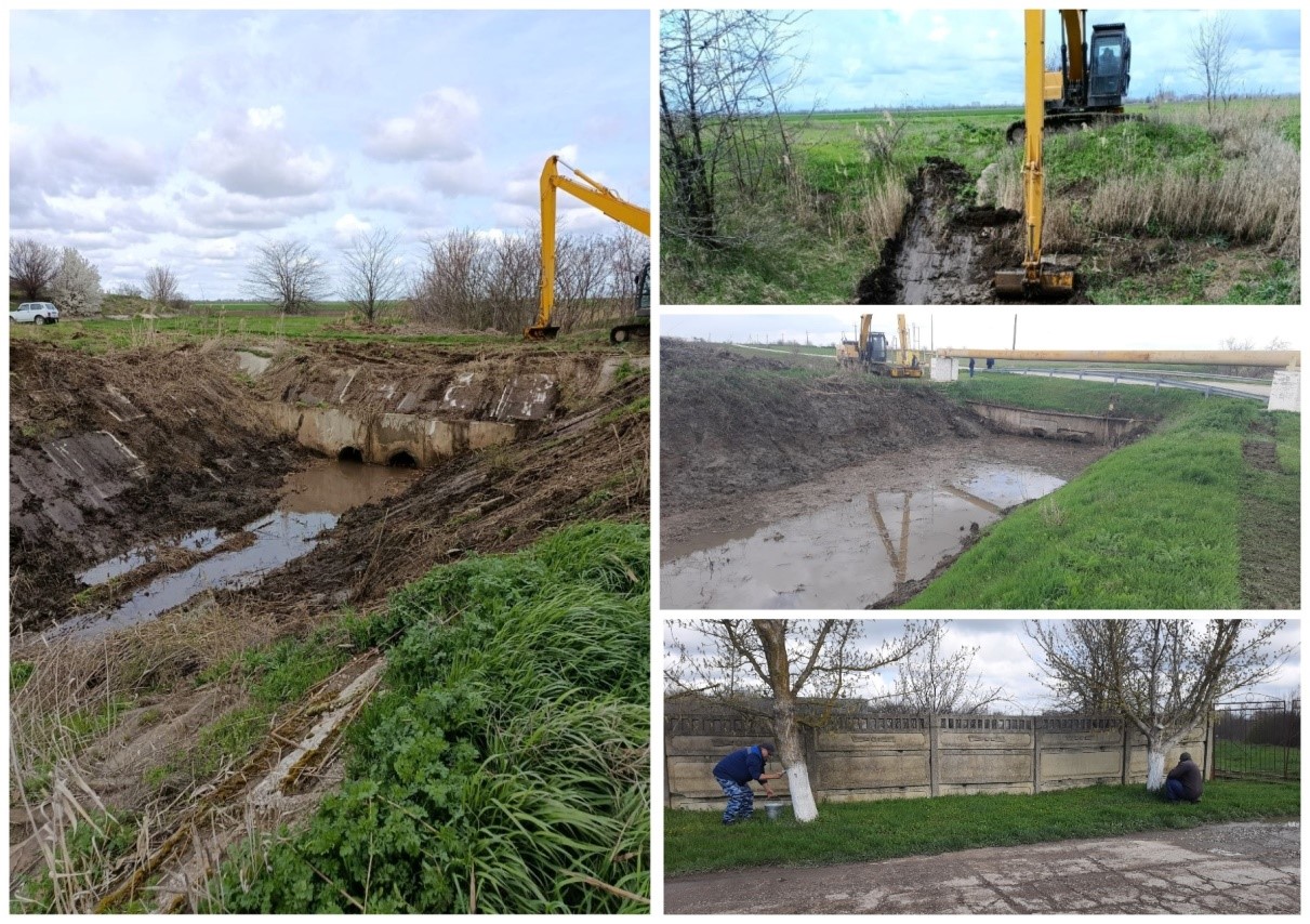 На коллекторно – дренажной сети района механизированным способом выполнены работы по расчистке русла главных коллекторов ГК-23-1, ГК-13-1 от водной растительности (камыша), а также от ила и наносов для улучшения пропускной способности. Протяжённость очистки составила 0,4 км.