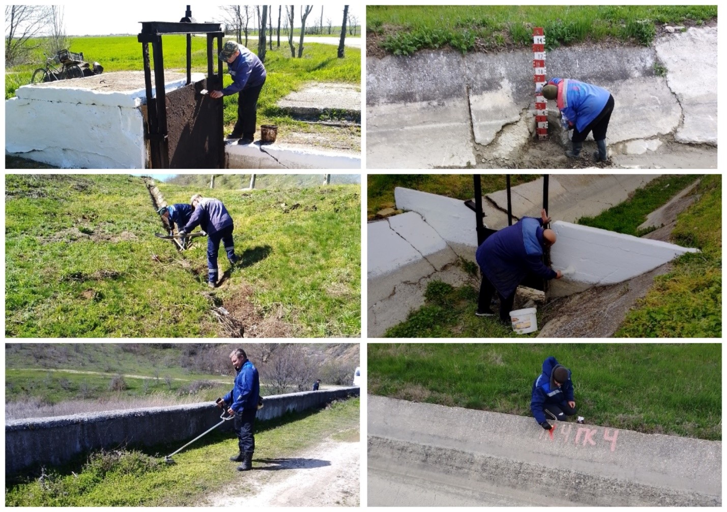 На Белогорском участке оросительных систем на межхозяйственных поливочных каналах Р-2, Р-2,1, Р-3, Р-4 производились ремонтно-уходные работы, маркировка пикетов, покос сорняков, уходные работы на ГТС№8 и ГТС№9. Уходные работы были проведены и на Горлинском водохранилище. В ходе проведения работ провели покос сорной растительности, спил деревьев и кустарников, а также выполнена очистка ливневых каналов от наносов и мусора.