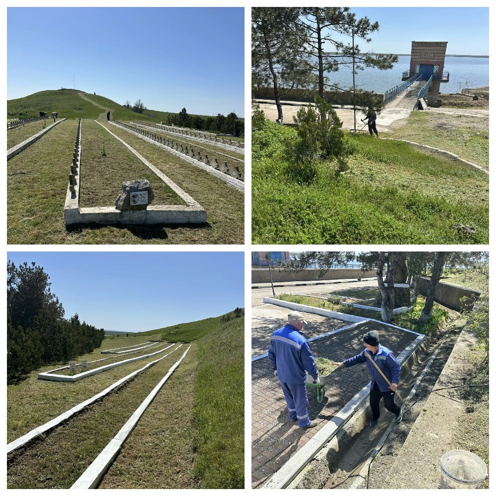 Сотрудниками Кировского филиала ГБУ РК «Крыммелиоводхоз» совместно с работниками Фронтового гидроузла проведены работы по благоустройству места захоронения – Братского кладбища Советских воинов 1941-1945 гг, расположенного у дамбы Фронтового водохранилища в 2,3 км к юго-востоку от села Фронтовое. На Братском кладбище Советских воинов захоронено 659 останков советских воинов. Данное кладбище является объектом культурного наследия. Участниками мероприятия по благоустройству проведены работы по окашиванию сорной травянистой растительности на площади захоронения 0,17 га и прилегающей территории, побелка бордюров известковым раствором на площади 150 м.кв., обновление надписей на надгробных табличках.