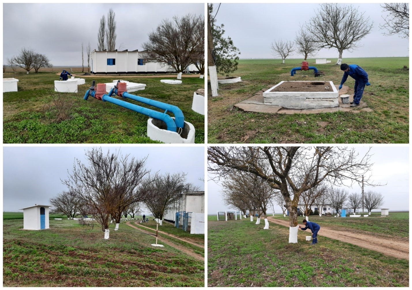 В рамках выполнения плана ремонтно-уходных работ, работниками отделения оросительных систем № 4 проведена работа по благоустройству и надлежащем содержании территорий насосных станций. Выполнена побелка элементов и конструкций, побелка деревьев на прилегающей территории насосных станций №378, № 488. На НС№487, №492 проведена побелка тумб, колодцев, деревьев, бордюров, бытовых помещений машинистов, покраска окон, дверей. Объем выполненной побелки и покраски составил 145 квадратных метров.