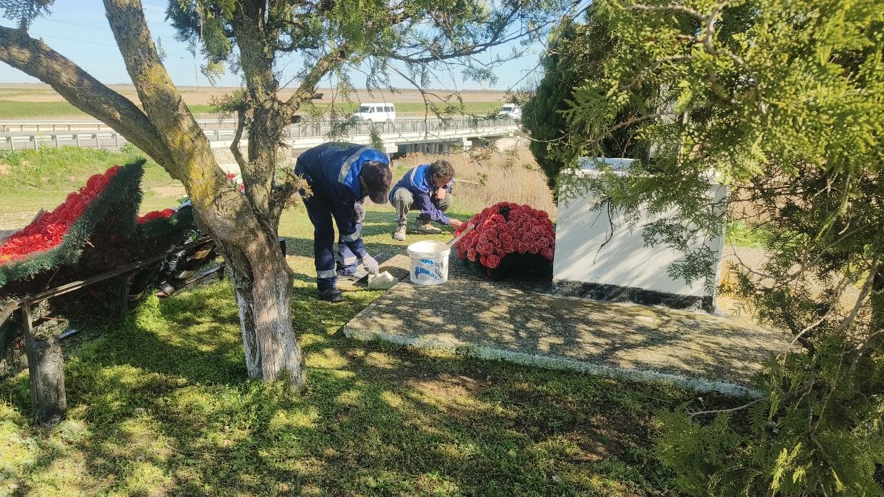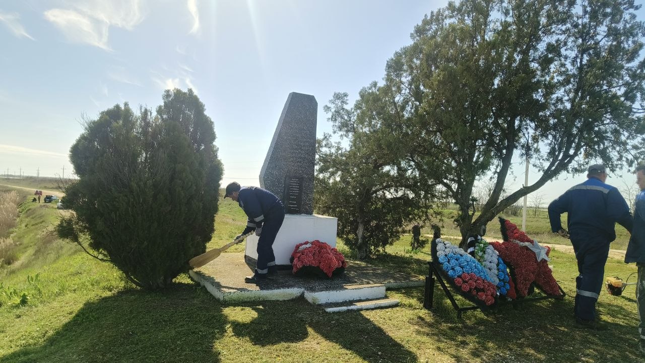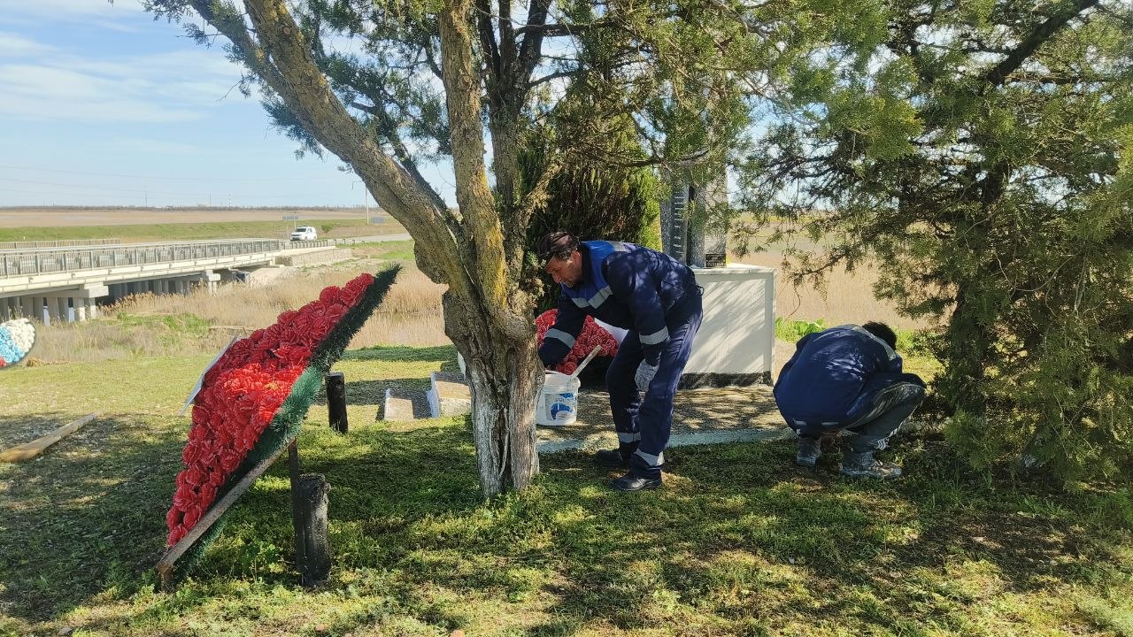 17.04.2026 года работники Красноперекопского филиала приняли участие в акции «Вода России» по благоустройству памятных мест Великой Отечественной войны на р.Чатырлык, памятник герою СССР Коробчуку А.К.. Работы выполнены вручную с помощью мотокос, покос сорной растительности и побелка деревьев.