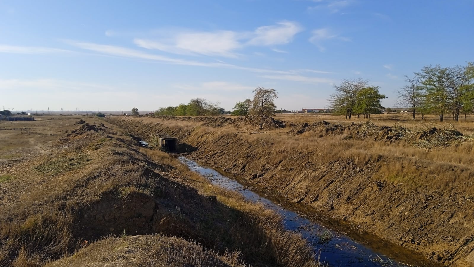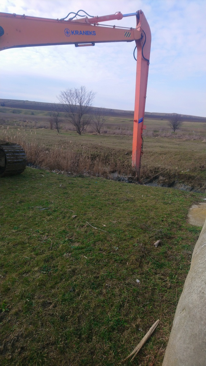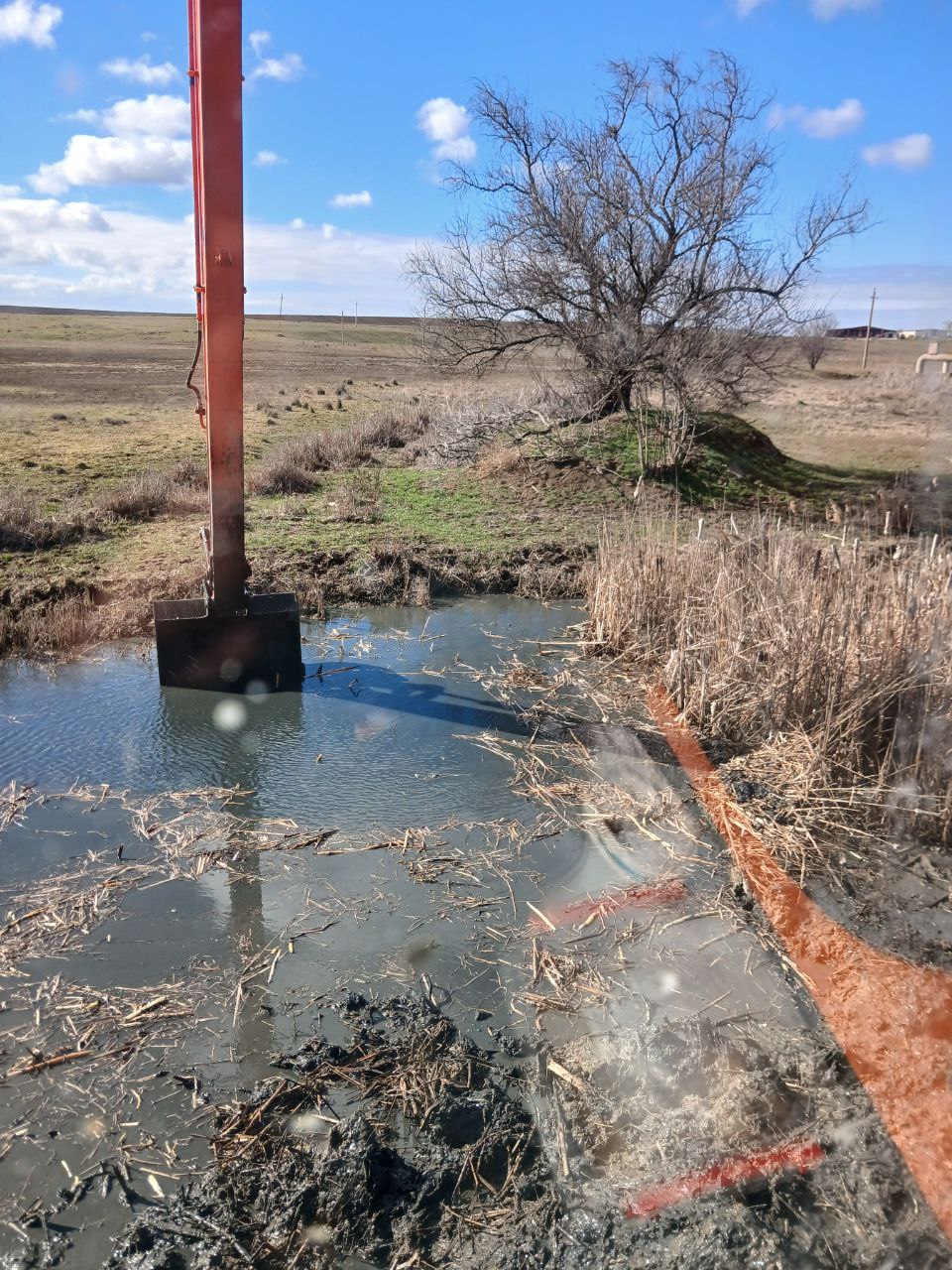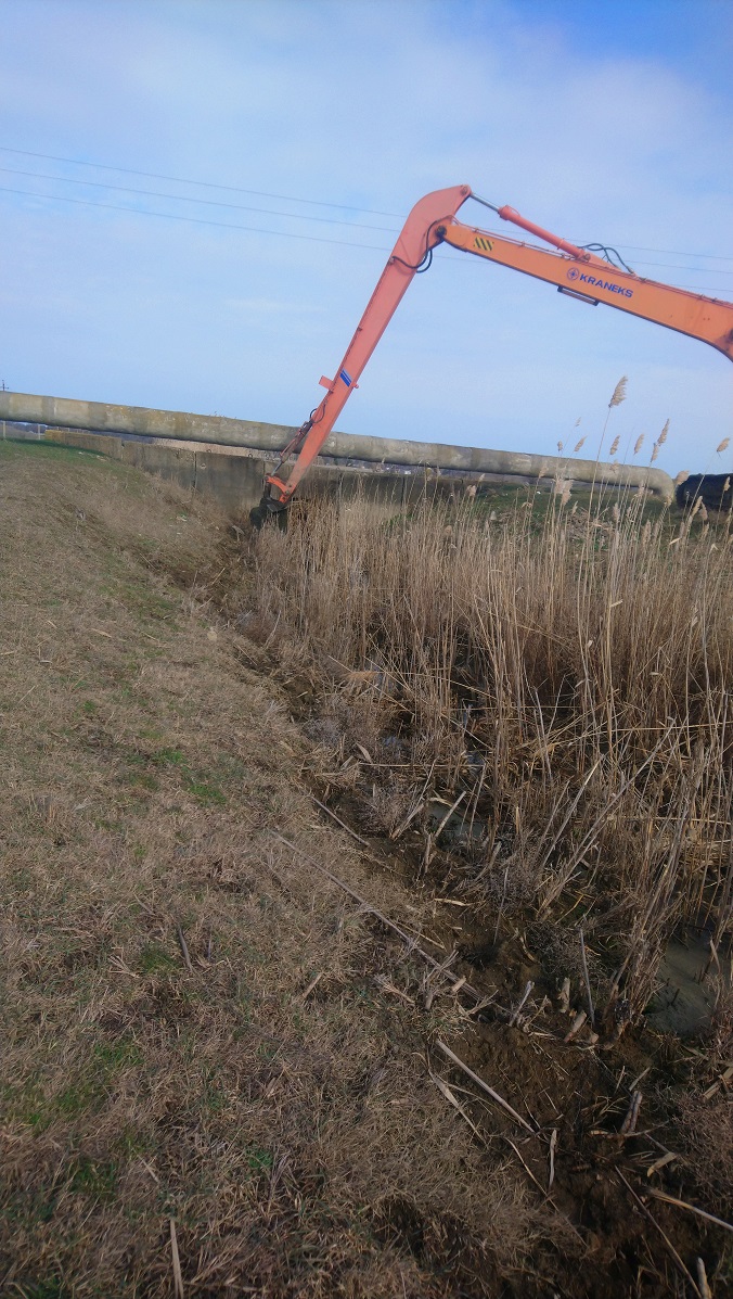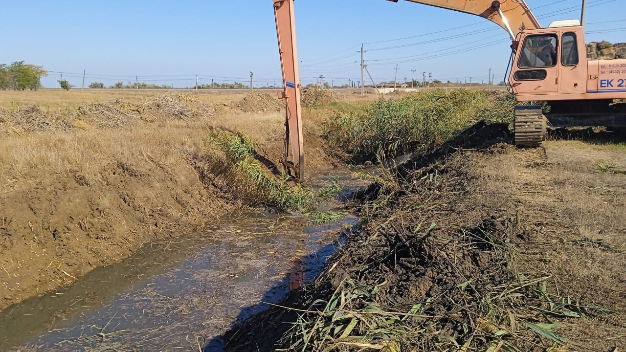 Для уменьшения возможного подтопления домовладений, прилегающих производственных территорий в селе Калиновка и селе Ленинское Ленинского района, Ленинским филиалом ГБУ РК «Крыммелиоводхоз» в рамках планово-предупредительных работ производятся работы по расчистке русла экскаватором EK-270LC главного коллектора ГК-33 и главного коллектора ГК-36 (соответственно) от заиления и растительности.