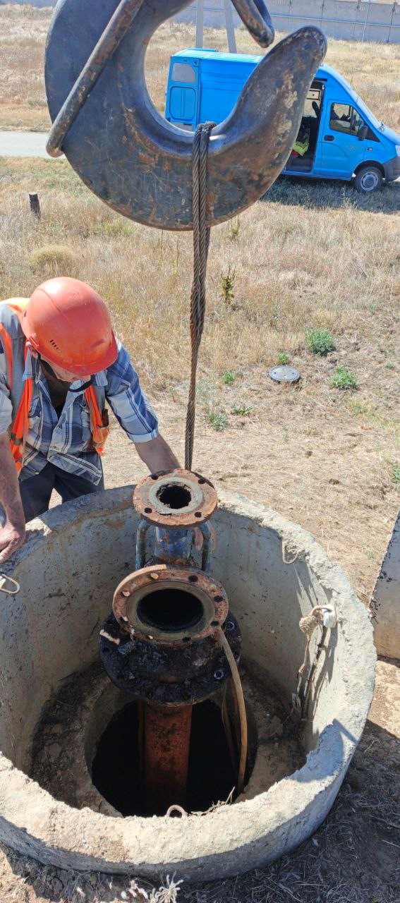 Специалисты Службы по ремонту и эксплуатации насосных станций, а также электромонтёры Азовского участка оросительных систем Джанкойского филиала произвели замену электропогружных насосов WILO XIRO SPC 10-250-2-A1 на 7 и 12 скважинах Просторненского водозаборного узла, вышедших из строя ранее, на отечественные насосы CRS 12-250/2нро. Для производства работ был задействован автокран КС-55729 МАЗ 6302 Красноперекопского филиала ГБУ РК «Крыммелиоводхоз». Работы проводились по наряду-допуску с соблюдением норм охраны труда и техники безопасности.