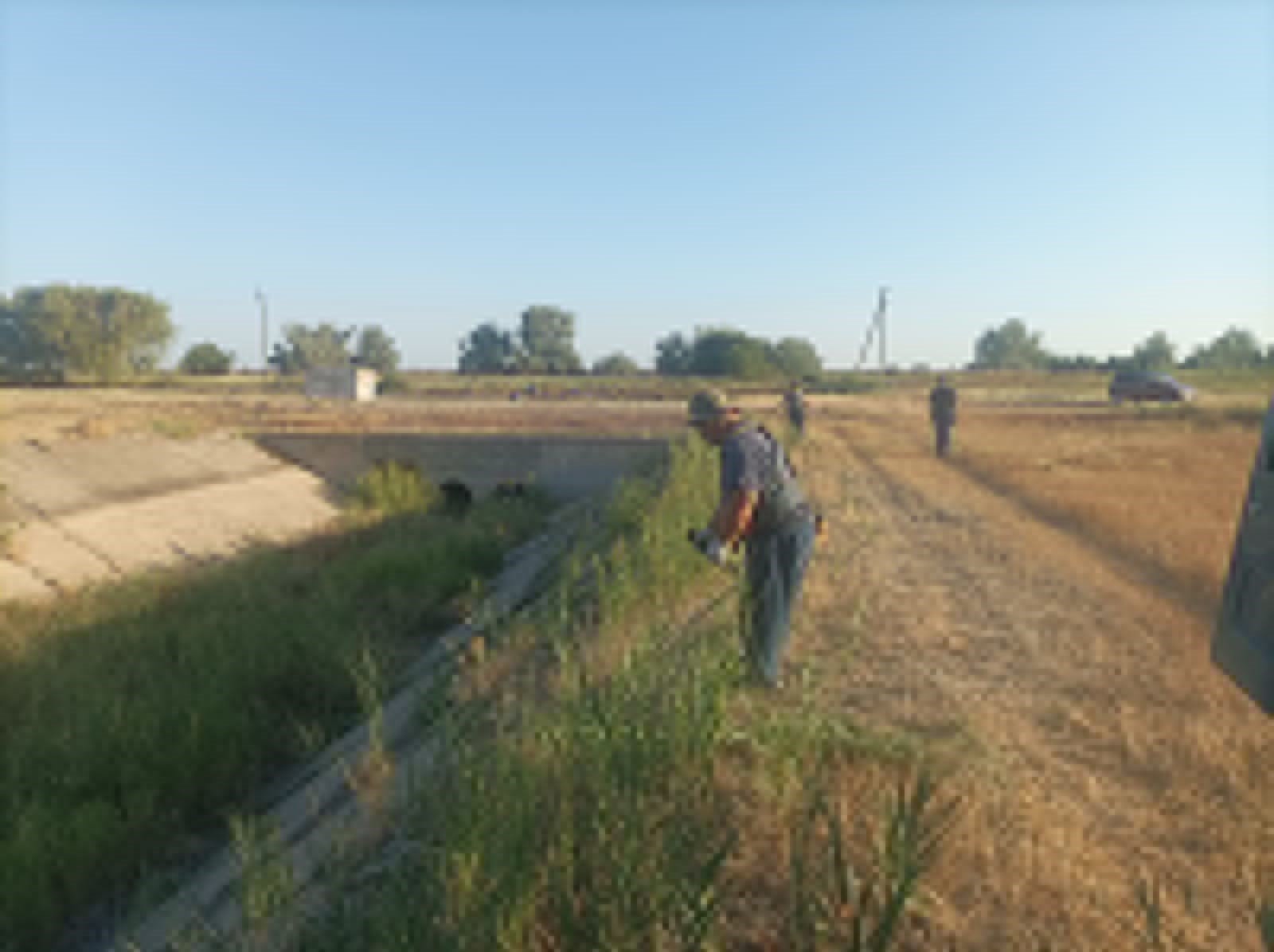 В Раздольненском филиале ГБУ РК «Крыммеливодхоз» согласно плана ремонтно-уходных работ на 2025 год проводятся работы по окашиванию от сорной растительности дна и дамбы канала ЗВРРК (Западная ветка Раздольненского рисового канала) на ПК0 - ПК10 силами осмотрщиков и рабочих по комплексному обслуживанию и ремонту зданий Раздольненского участка оросительных систем.