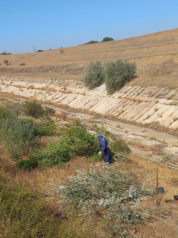 Согласно плану ремонтно-уходных работ на 2025 год, работниками Красногвардейского участка оросительных систем продолжаются работы по срезке древесной поросли с применением средств малой механизации. На канале Рк-3 ПК 160 очищено 250 кв. метров территории, на КГВ ПК 290 выполнено работ на территории 500 кв. метров.