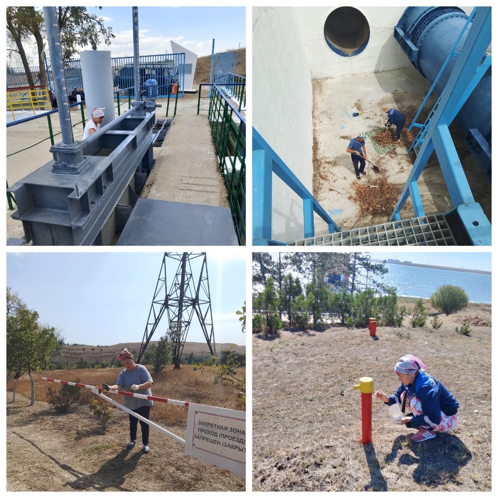 Кировским филиалом ГБУ РК «Крыммелиоводхоз» в сентябре месяце выполнен ряд ремонтно-уходных работ на Фронтовом гидроузле, согласно плана на 2025 год. Работниками в количестве 8 человек выполнено окрашивание скважин и реперов на низовом откосе и плотине Фронтового водохранилища, а также обновление краски на шлагбауме. Выполнена побелка ограждения и стен служебных помещений, окрашивание дверей и краёв смотровой ямы гаража. На дюкере «Фронтовое» выполнено окрашивание элементов компенсаторного колодца и защитных ограждений на верхнем бьефе, а также двух агрегатов на нижнем бьефе, произведена побелка бордюров. Кроме того, для поддержания санитарного порядка, проводятся регулярные мероприятия по уборке листвы на территории объектов гидроузла, уборка клумб, обновление известковой побелки деревьев и бордюров, очистка ливнеотводящих лотков и гребня плотины от растительного мусора.